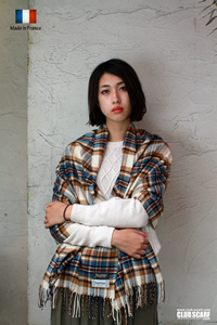 フランス製ファイターズチェックストール ブラック/ホワイト 各6,800円(税別)